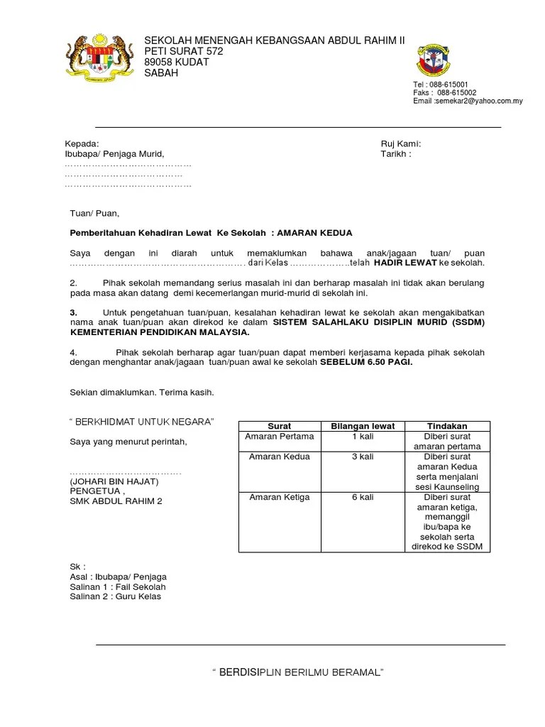 Contoh surat amaran pelajar ponteng contoh surat. Contoh surat rekomendasi pindah sekolah from image.slidesharecdn.com surat rasmi lambat datang kerja resepi ayam k. Saturday, october 2, 2021 add comment edit. Contoh surat amaran datang lewat ke tempat kerja. Contoh surat tunjuk sebab majikan dan pekerja contoh resume terkini undang . Ini contoh surat tunjuk sebab jika datang lewat tidak hadir kerja formal tapi simple. Ketidakhadiran tuan/puan pada tarikh di atas boleh dikenakan tindakan tatatertib, boleh dilucuthak emolumen bagi hari staf tidak hadir bertugas di bawah .